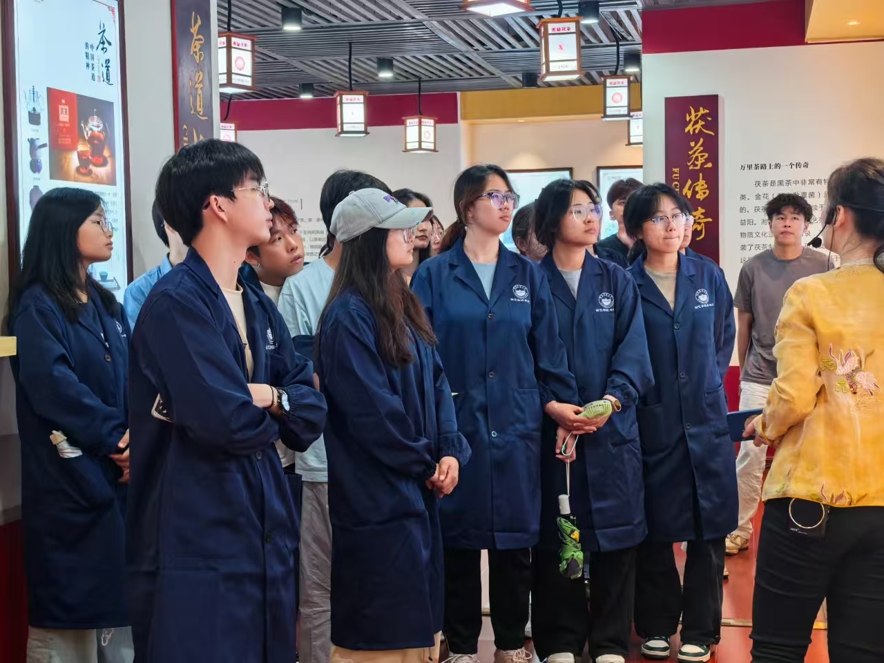 師生們首先實(shí)地參觀了湘益生產(chǎn)線與茶博館。在生產(chǎn)車間,同學(xué)們親身感受益陽(yáng)茶廠標(biāo)準(zhǔn)化、現(xiàn)代化的生產(chǎn)流程,對(duì)茯磚茶的制作工藝有了初步直觀的了解。茶博館內(nèi)陳列的一件件展品,則如同一部生動(dòng)的茶文化史書,讓師生們沉浸式領(lǐng)略益陽(yáng)茶廠深厚的文化底蘊(yùn),探尋茯茶的前世今生,深刻體會(huì) “一片茶葉承載的使命”。