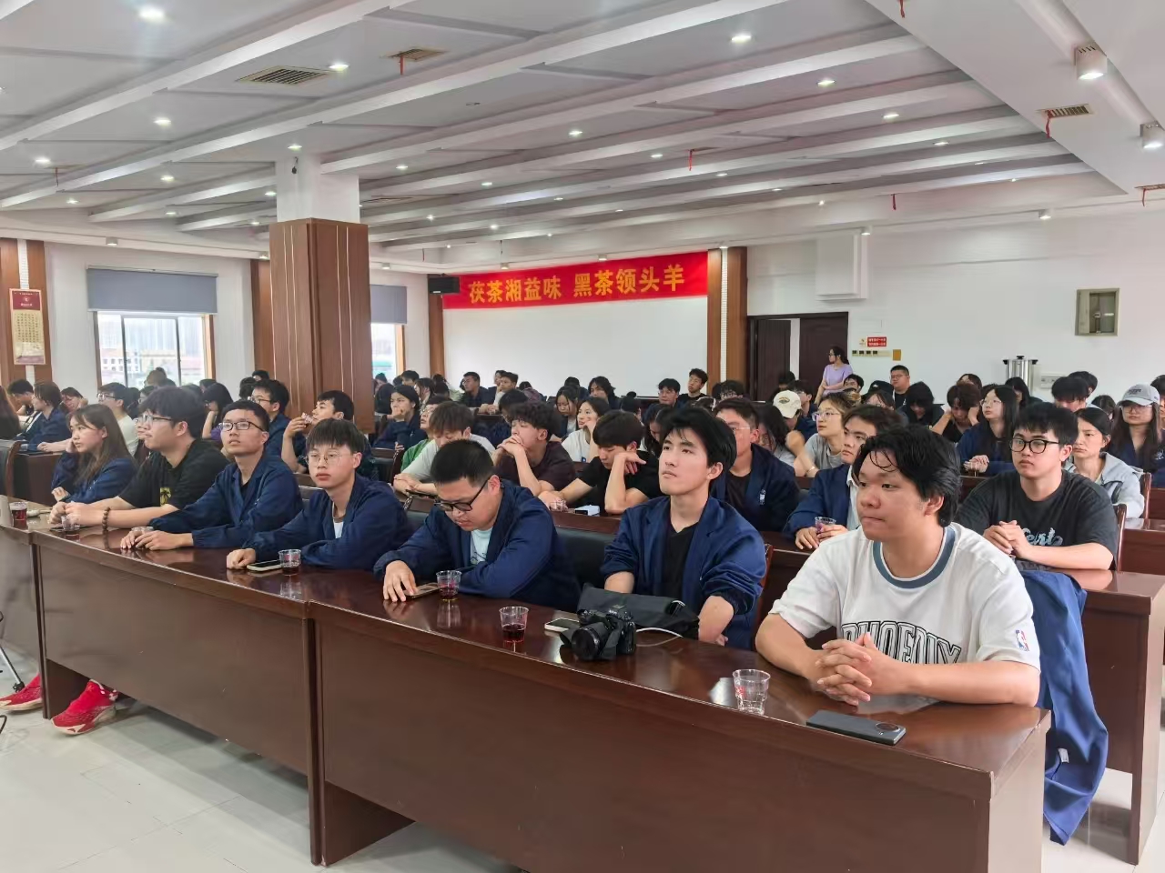 隨后的專題講座中,國(guó)家級(jí)非遺傳承人劉杏益大師結(jié)合近四十年實(shí)踐經(jīng)驗(yàn),深入解讀了茯茶“發(fā)花”核心工藝的科學(xué)原理與歷史價(jià)值,分享了標(biāo)準(zhǔn)化生產(chǎn)突破、健康功效研究等前沿成果。他強(qiáng)調(diào),青年人才的參與和現(xiàn)代科技的賦能,是推動(dòng)茯茶技藝活態(tài)傳承、實(shí)現(xiàn)產(chǎn)業(yè)可持續(xù)發(fā)展的關(guān)鍵,并鼓勵(lì)同學(xué)們以創(chuàng)新思維為傳統(tǒng)行業(yè)注入新活力。