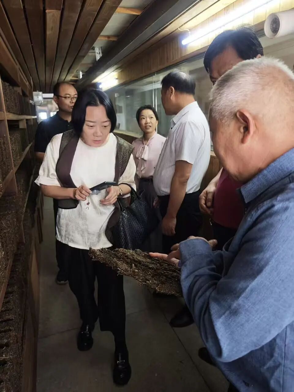 在公司總經(jīng)理余智勇,黨委書(shū)記、常務(wù)副總經(jīng)理徐迪軍,首席專家、茯磚茶制作技藝國(guó)家級(jí)非遺傳承人劉杏益等的陪同下,調(diào)研組實(shí)地考察了生產(chǎn)車間、湘益茶博館。在生產(chǎn)一線,調(diào)研組細(xì)致察看了茯磚茶的傳統(tǒng)制作工藝流程;在茶博館,深入了解了茯茶深厚的歷史底蘊(yùn)與企業(yè)發(fā)展歷程。