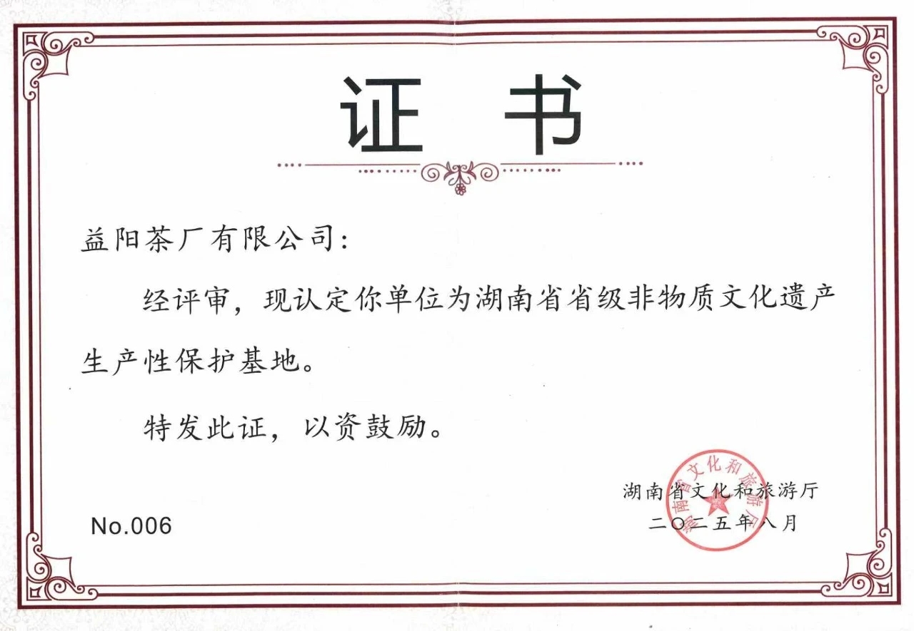 近日,湖南省文化和旅游廳公布首批省級(jí)非物質(zhì)文化遺產(chǎn)生產(chǎn)性保護(hù)示范基地名單,益陽(yáng)茶廠有限公司憑借其在茯磚茶制作技藝領(lǐng)域的深厚積淀與持續(xù)創(chuàng)新,成功入選。